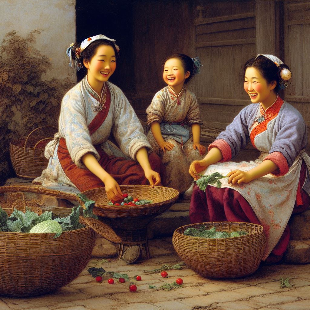 Zhulan and her two girls were picking vegetables and hanging them in the yard, talking and laughing, and the neighbors could hear clearly.