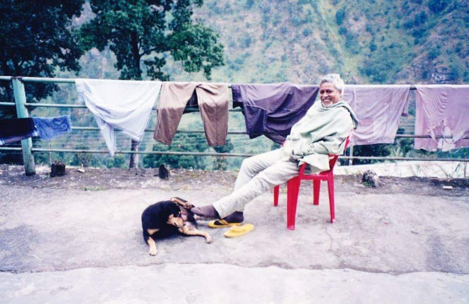 The railing in the story and I took this picture from my porch. So You can understand how far the snake was from me and yet I was so terrified. BTW that is my late father playing with a local doggo.