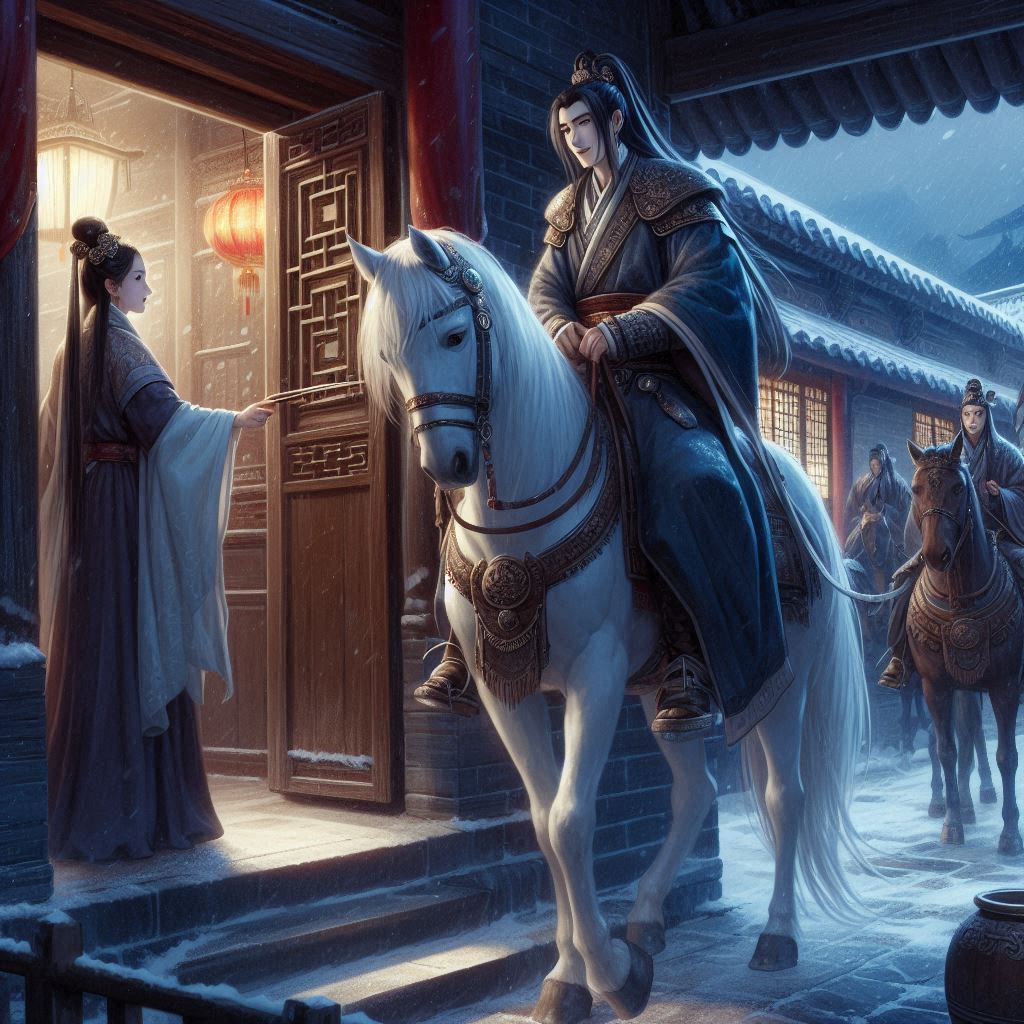 Su Yujin escorted them to the entrance of the alley as usual, and after they both got on their horses, she bowed and said, “Second Master, take care and be careful on your journey.”