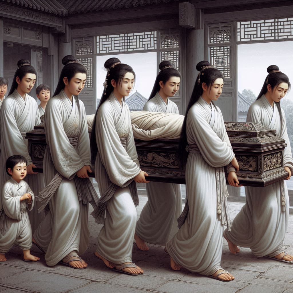 Ziheng also wanted to carry the coffin for his grandfather, but he was too young. The experiences of the past two days had made him grow up quickly, and he realized that all he could do now was to be obedient.