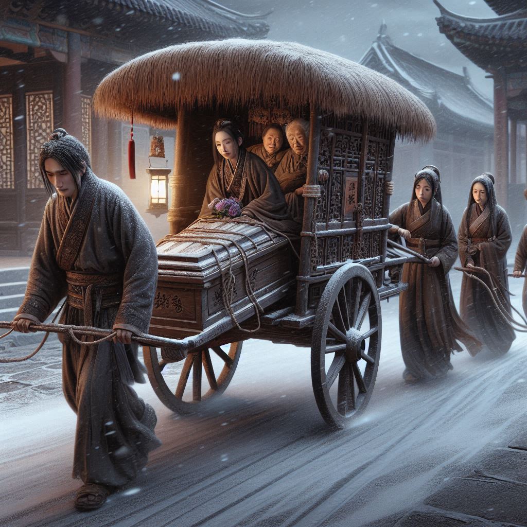 Zhou Xiaodi and Zhou Xiaomei were pushing the coffin from the back, while Zhou Yu was pulling a cart in the front. The coffin was connected to the cart with a rope. The cart was pulling the coffin, and it was much easier for Zhou Xiaodi and Zhou Yu to push it.