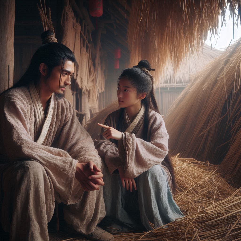 Zhou Yu noticed that his wife was hesitant to speak in the straw hut, so he smiled and said, “Okay.”