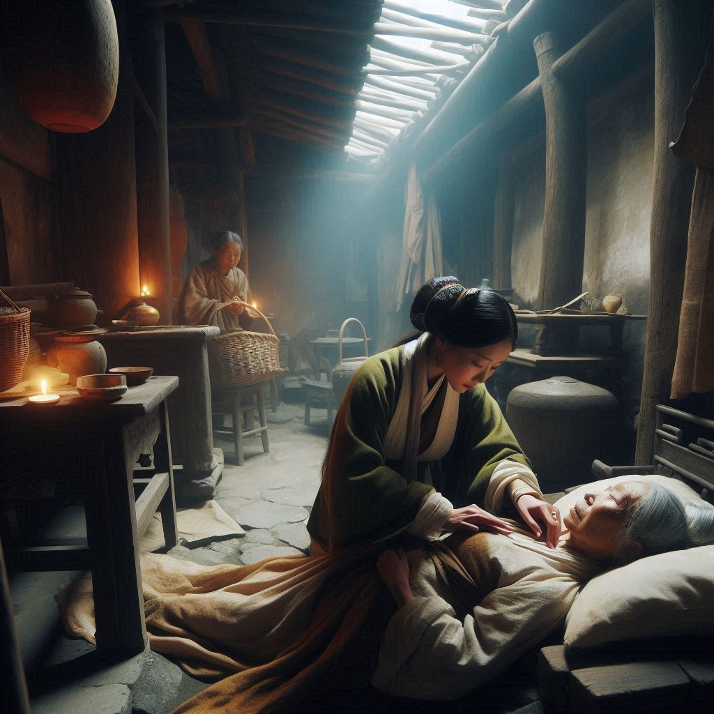 Because of Shi Cuihua’s mother Ma Shi’s vomiting and diarrhea, the narrow and dark room had a very unpleasant smell at the moment.