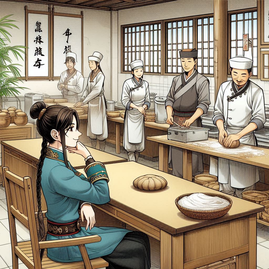 It was already past lunchtime when Liang Hongjin came over. Wen Mingtang went to Ji Caimai’s takeaway stall to pay the money and then went behind the counter to knead dough to make the xiè huángmiàn.
