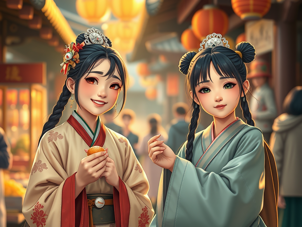 The little girl was relieved to see that Ai Cao was easy to talk to, but she apologized again and even bought a bag of Lǘ Dǎ Gǔn1 from the stall next to her to give to Ai Cao as an apology.