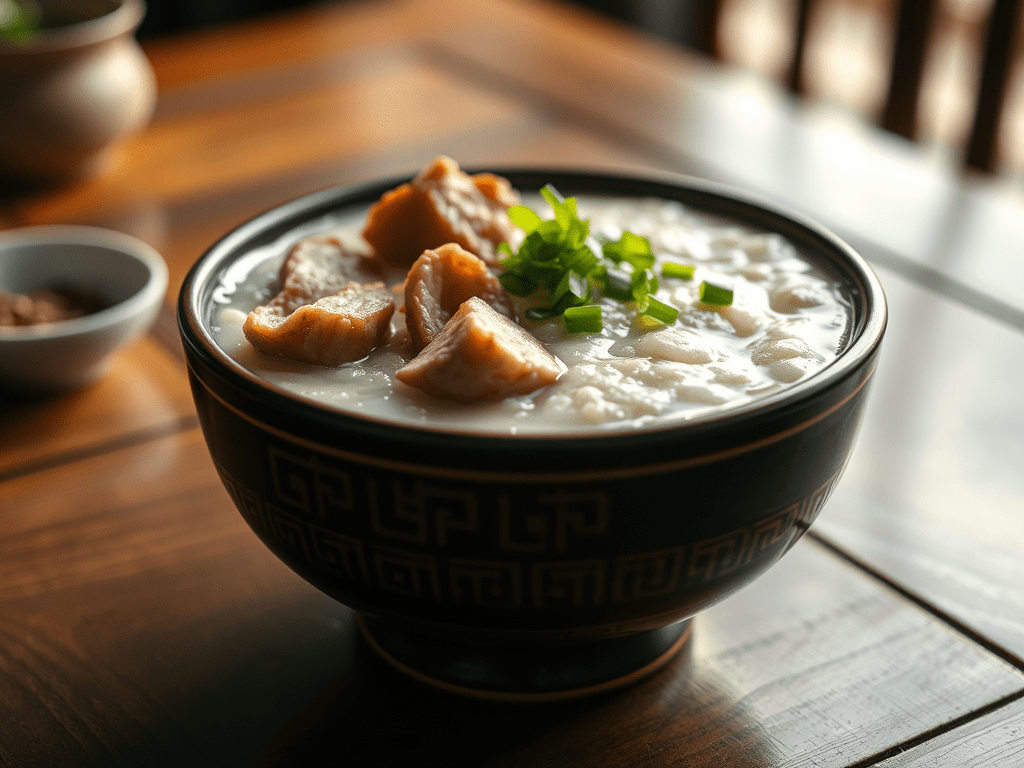 When an officer was serving breakfast, he curiously asked the name of the recent breakfast. Wen Mingtang handed the officer a large bowl of visibly sticky porridge and said, “Pídàn shòuròu zhōu!”
