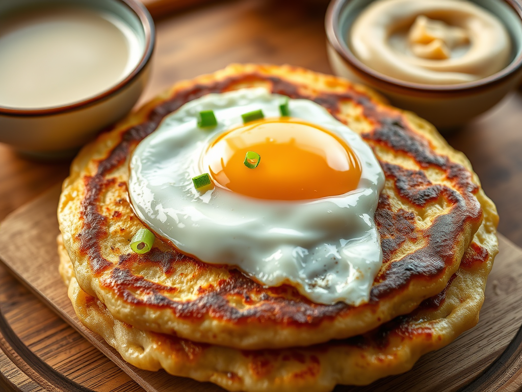 The scallion pancake was fried until golden brown on both sides, and a quick-fried egg was pasted on one side.