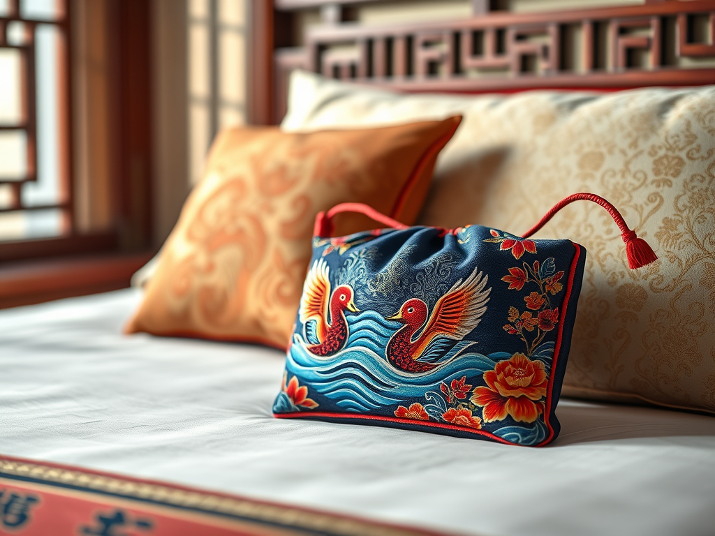 The purse featured a pattern of mandarin ducks.